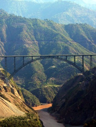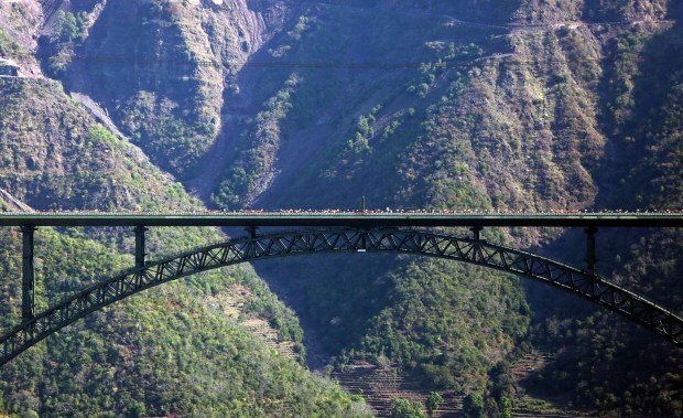 The Chenab arch bridge spans between Bakkal and Kauri in the Reasi district of Jammu and Kashmir, providing a vital link from Katra to Banihal.