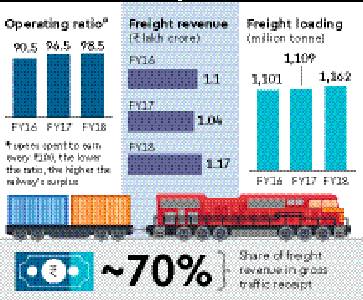 Some Rs 7,300 crore the Indian Railways got as advance freight from bulk consumers and as proceeds of land monetisation from fellow PSUs enabled it to avoid reporting a deficit in FY18. It reported an operating ratio (OR) of 98.5 for the last financial year, as against the revised estimate (RE) of 96 announced when the general Budget was presented, but the OR would have been even worse at 104 or thereabouts had these ‘advances’ were not factored in.