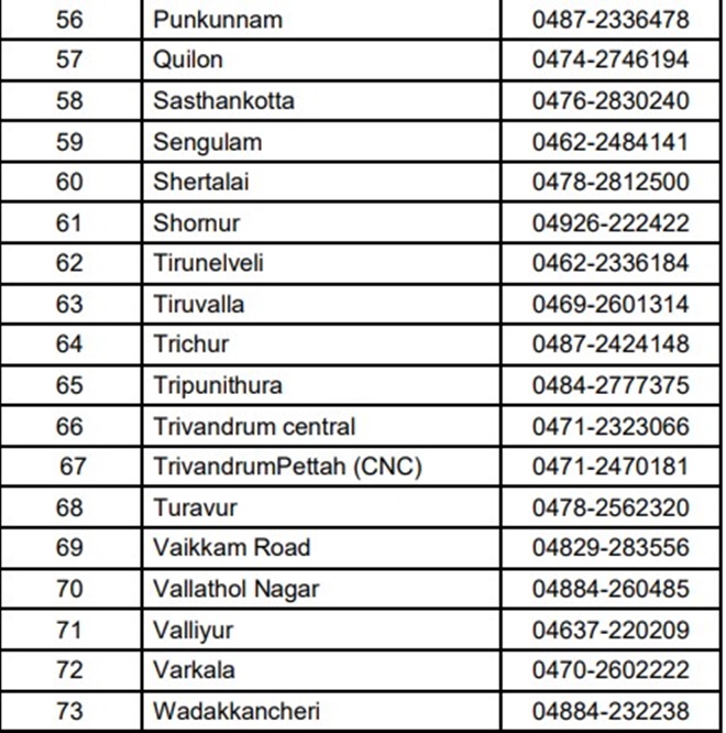 In case you are trying to reach out call the nearest railway station or railway officials to know about the current situation of train services then here are the telephone numbers of some railway stations provided by the Southern Railway: Aluva or Alwaye station – 0484-2624141, Ernakulam Junction – 0484-2375419, Kottayam station – 0481-2562933, Trichur- 0487-2424148. Below is the complete list of railway stations under Madurai Division and Trivandrum Division along with their helpline numbers, provided by the Southern Railway: