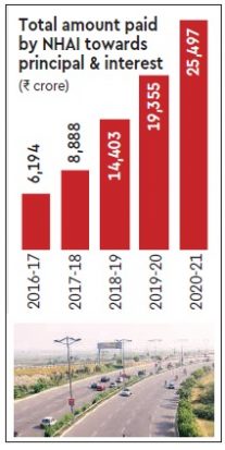 In line with the rise in debt, NHAI’s repayment obligation has also seen a constant rise over the years. “NHAI creates valuable road assets which are financially viable. Tolling of the completed public-funded road assets and monetising the assets through toll-operate-transfer (ToT)/infrastructure investment trust (InvIT) modes are major steps taken by the government to generate revenue for repayment of the loans and further construction by NHAI,” Gadkari said.