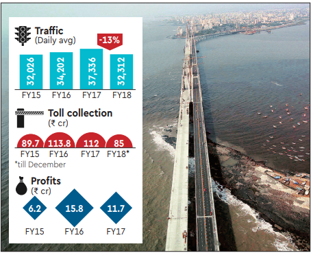 Maharashtra State Road Development Corporation (MSRDC) had built the sea-link at a cost of Rs 1,702 crore but since 2009, when the sea link was opened up, it has recovered less than Rs 600 crore as its share of the toll. MSRDC pays about Rs 204 crore annually as interest payments.
