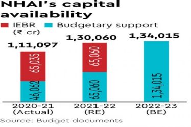 The NHAI was given a budgetary support of Rs 65,060 crore in FY22. The authority was allowed to borrow Rs 65,000 crore each in the current fiscal and in the previous fiscal. At the same pace of borrowing, its debt would have breached the `4 lakh-crore mark by the end of FY23. Servicing cost of debt, estimated to be Rs 30,000 crore in FY23, is putting a strain on NHAI’s balance sheet.