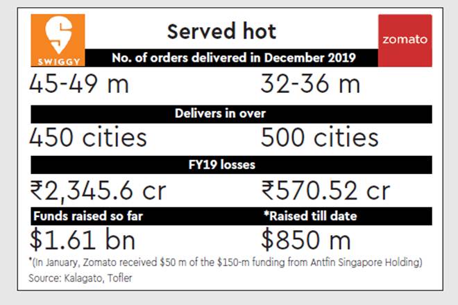While the average order value (AOV) on Swiggy ranged anywhere between Rs 243- Rs 300 during October-December 2019, AOV on Zomato stood between Rs 252-Rs 278 during the period, data from Kalagato shows.