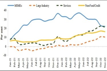 Credit growth to the MSME sector grew from less than 10 per cent during January 2021 to over 35 per cent during December 2021 but dropped to around 20 per cent as of November 2022, the data in the survey sourced from the Reserve Bank of India (RBI) showed.