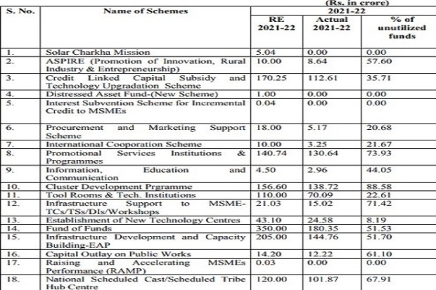 Credit and finance for MSMEs: The latest data on the underspending of schemes shared by the MSME ministry showed that funds allocated under various schemes of the ministry for the financial year 2021-22 had remained underutilized. According to the information on underspending shared by the minister of state for MSMEs Bhanu Pratap Singh Verma in a written reply to a question in the Lok Sabha recently, funds under as many as 18 schemes stood underutilised.