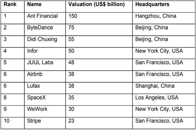 The top 10 list of biggest unicorn cities is also dominated by China with Beijing home to 82 unicorns followed San Francisco (known as Silicon Valley) with 55 unicorns. Shanghai, New York, and Hangzhou are top cities having 47, 25, and 19 unicorns respectively. India’s Bengaluru (ranked ninth with 9 unicorns) is the only city in the top 10. Redwood City and London also have 9 unicorns, according to the list.