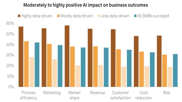 “SMBs with a high level of data maturity adopt AI at twice the rate of their competitors,” the survey said underscoring that while AI is powerful and transformative, it’s data that fuels its efficacy.