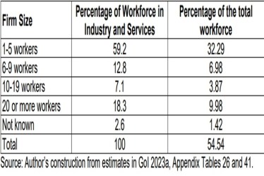 With respect to small enterprises, 72 per cent of the workforce in industry and services was employed in enterprises with nine or fewer workers and only 10 per cent are employed in enterprises with 20 or more workers, as per the Periodic Labor Force Survey 2021-22. This indicated that the proportion of workers in the large enterprises is in the single digits.