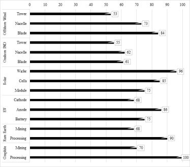 Chinese Dominance (%) on Strategic Metals and Technologies for Clean Energy Transition