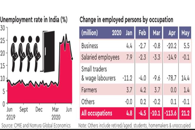With the lockdown curbs being eased, the economy is estimated to have added 21 million jobs in May, mainly in occupations that were hit the most: small traders & wage labourers and businesses. However, salaried employees continued to experience job losses.
