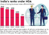 Last year, India witnessed a 23-notch jump to a record 77th position in ease of doing business index that captured the performance of 190 countries.