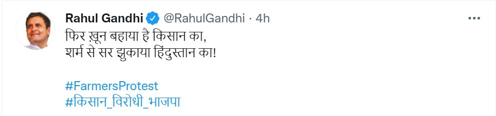Meanwhile, a video allegedly of the Sub Divisional Magistrate Ayush Sinha has gone viral on social media in which he can be heard ordering a lathicharge on the protestors. “CM-Dy CM’s conspiracy to kill farmers in Karnal and it is clear from the orders of the Duty Magistrate – who is ordering the police to break the heads of the farmers and hit them with sticks. BJP-JJP is “General Dyer” government!” said Surjewala.