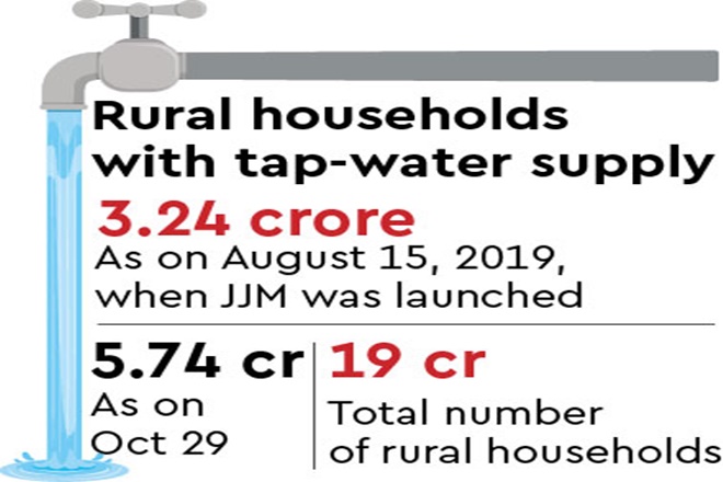 Piped drinking water reached about 5.74 crore rural households or 30% of such households as on last Thursday, compared with 3.24 crore (17%) as on August 15 last year, when Prime Minister Narendra Modi unveiled the Jal Jeevan Mission (JJM), according to the official dashboard. This represents an impressive over 50% jump in 14-and-a-half months.