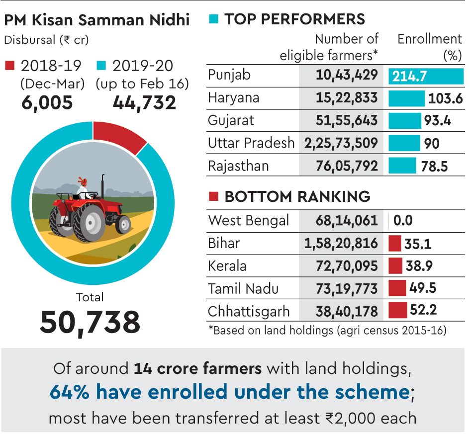 Transfer of income-support amounts to farmers’ bank accounts under the PM Kisan scheme have been trailing the Budget target, but what’s curious is that two states – Punjab and Haryana – have reported enrolments much higher than the number of land-holding farmers in the states as per the relevant agriculture census (2015-16). Either the census information based on sample surveys is erroneous or the state governments concerned have inflated the numbers of persons who meet the PM Kisan eligibility criteria.