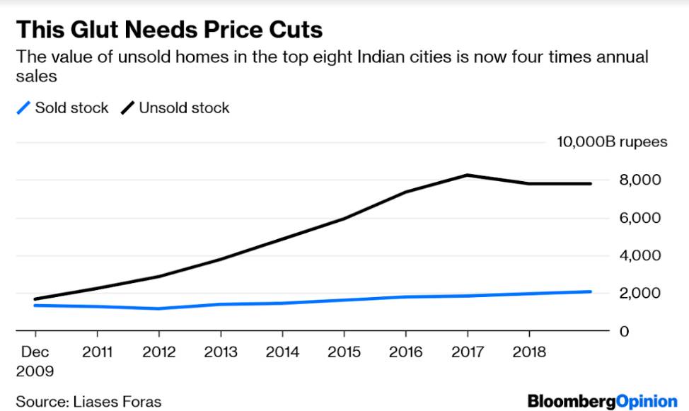 Now that the underlying demand-supply situation has turned extremely slippery, the question is whether developers will feel enough pressure from struggling financiers to cut apartment prices and clear inventory, or if they’ll be bailed out. The absence of market discipline has kept Indian real-estate prices far too high for far too long.