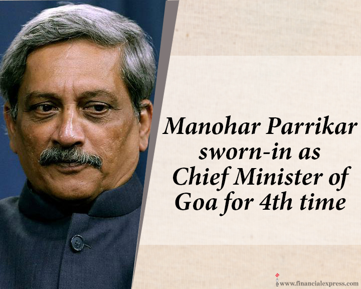 Former Defence Minister Manohar Parrikar was sworn-in as Goa’s new Chief Minister on Tuesday evening in the presence of state governor and party members. This will bTuesdaykar’s fourth stint as the Goa Chief Minister. Even though BJP failed to get the majority and won only 13 out of 40 seats in the state, it got support from BGP (3), GFP (3) and 2 independent candidates to form the government. The Supreme Court has ordered a floor test on 16th March where BJp will have to prove its majority. After being the Chief Minister he said, “I agree the mandate is fractured, but with 22 MLAs together the vote share is more than sufficient. It’s post-poll alliance.”