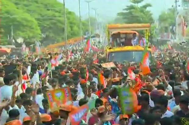 4:35 PM: BJP President Amit Shah holds roadshow in Karnataka’s Davanagere.