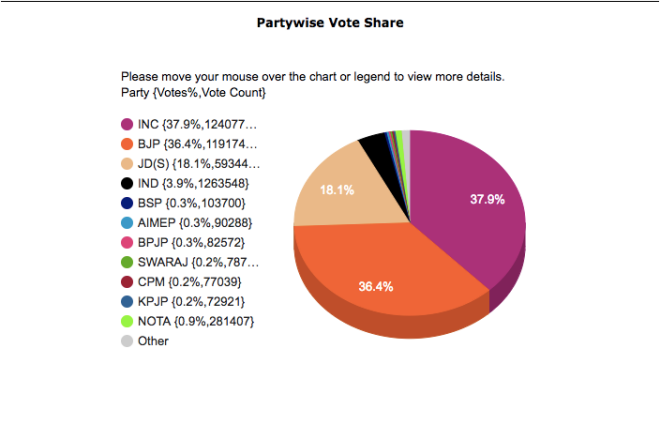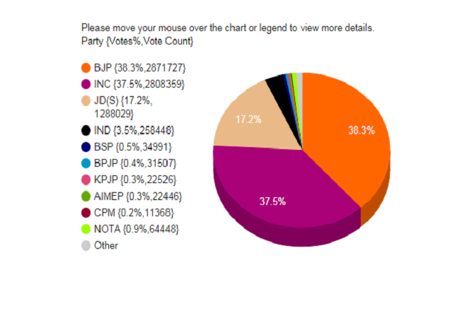 11:50 AM: Interestingly, Congress has a higher vote share than BJP. Also, almost 1% people chose NOTA. Here is the Karnataka election vote share as per EC: