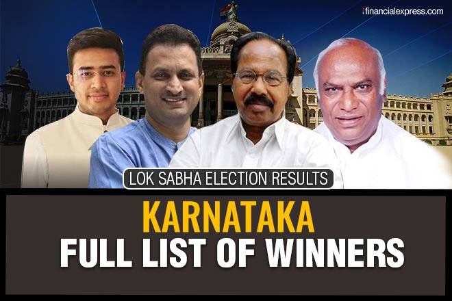 Karnataka Lok Sabha election result – Full list of winners: The Bhartiya Janata Party (BJP) is heading towards a landslide victory in Karnataka, according to latest trends by the Election Commission. Riding on the Modi wave, the saffron party has won one seat while it is leading on other 23 seats out of 28 Lok Sabha seats in the state. BJP has posted its first victory in the southern state with its candidate from Haveri parliamentary constituency, C S Udasi trouncing Congress’ D R Patil by a margin of 1,40,882 votes, according to Election commission.