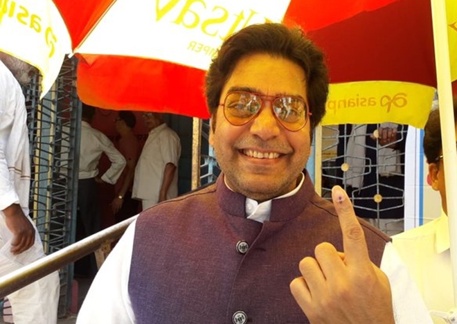 Actor Ashutosh Rana after casting his vote at polling booth number 105 in Gadarwara, Narsinghpur of Madhya Pradesh.