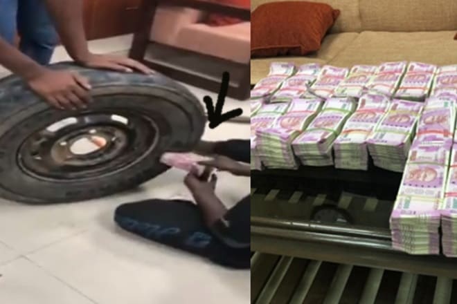 The Income Tax officials on Sunday caught a man who was transporting Rs 2.30 crores in cash stuffed inside a spare tire kept in his car. News agency ANI posted a video in which a person can be seen pulling out a number of currency bundle of Rs 2000 notes.