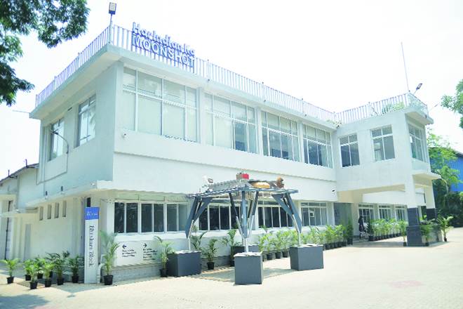 IT’S A hot but not so humid Bengaluru afternoon. As I drive down to the Team Indus office at Jakkuru Layout on the outskirts of the city from the Kempegowda International Airport, the ‘destination’ on my cellphone GPS points to a large, whitewashed building within a sprawling campus. A neon sign on the rooftop screams ‘Har Indian ka Moonshot’, while a prototype of a moon lander takes up space on the ground below. On the other side, behind the lawns, is a massive backdrop (used for events, etc) depicting the surface of the moon in the background and a silhouette of Team Indus’ engineers working on a spacecraft in the foreground.