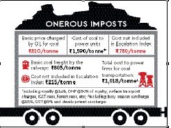 The price escalation index for coal—determinant for the calculation of variable fuel charges of power production—does not include royalty, district mineral fund contribution, etc, paid by Coal India and adds to its basic coal production cost. Also, the GST compensation cess (earlier known as the clean energy cess) and surface transportation charges are not included in the railway freight.