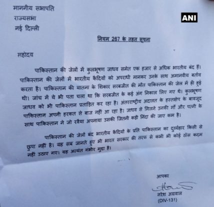 Samajwadi Party leader and member of Rajya Sabha Naresh Agarwal after provoking a controversy today with his comments on Kulbhushan Jadhav, wrote to the chairman of the Upper House Venkaiah Naidu, who is also the Vice-President of India, highlighting the lack of action by the Narendra Modi government to prevent ill-treatment of Jadhav. In the letter he wrote, “The ill-treatment meted out to Indian prisoners lodged in Pakistani jails is known to all. In spite of knowing this Indian government has not taken stern steps, this is a very serious matter.” Earlier today, he sparked a controversy saying, “Agar unhone (Pakistan) Kulbhushan Jadhav ko aatankwadi apne desh mein mana hai, to wo uss hisaab se vyavhaar karenge; humare desh mein bhi aatankwadiyon ke saath aisa hi vyavhaar karna chahiye, kada vyavhar karna chahiye (If they (Pakistan) consider Kulbhushan Jadhav a terrorist in their country, then they will treat a terrorist as a terrorist. We should treat terrorists in our country the same way).”