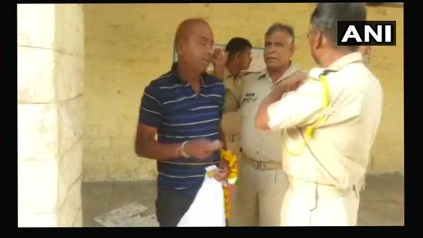 8:25 AM: A follower of Asaram tried to enter Jodhpur Central Jail with garland. He was detained by police.