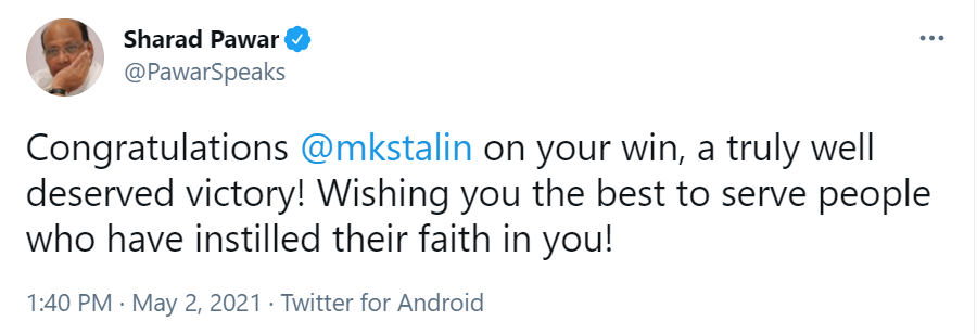 Tamil Nadu Election Results Live: Sharad Pawar congratulates MK Stalin