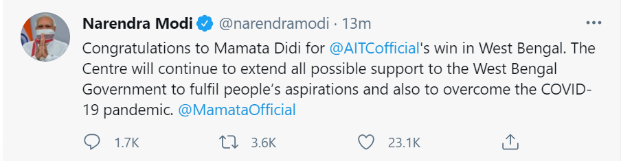 West Bengal Election Results Live: PM Modi congratulates Mamata Banerjee