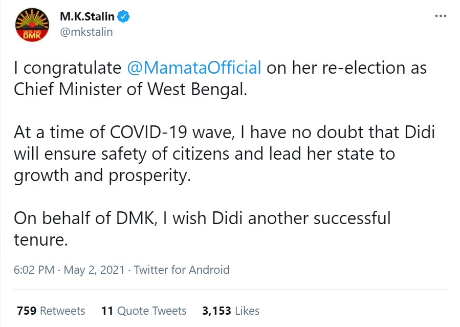West Bengal Election Results Live: MK Stalin congratulates Mamata Banerjee