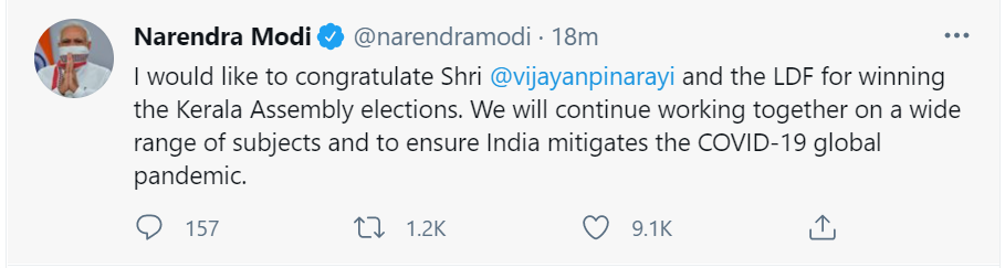 Kerala Election Results Live: PM Narendra Modi congratulates Pinarayi Vijayan