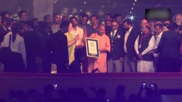 Ayodhya Deepostav 2018 enters Guinness Book of Record for lighting 3,01,152 earthen lamps, on the bank of River Sarayu.