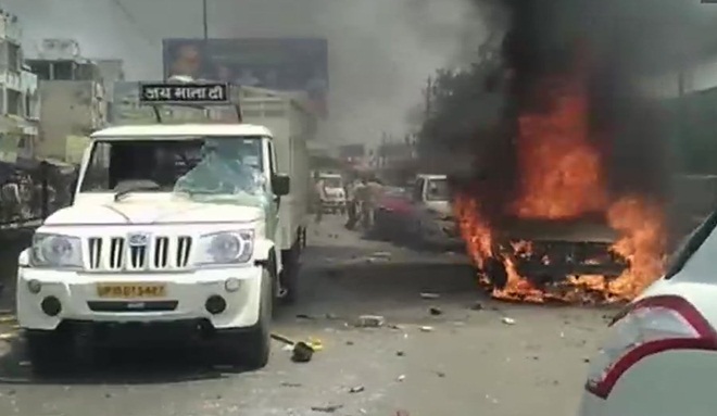 2:50 PM: Vehicles were set ablaze in Uttar Pradesh’s Muzaffarnagar during Dalits protest over SC, ST Protection Act