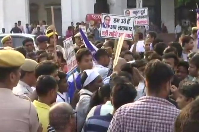 6:11 PM: Protestors have gathered at Delhi’s Connaught Place and have blocked traffic over SC/ST Protection Act. Police trying to control protest.