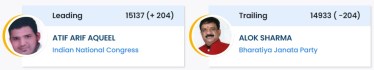 Congress candidate Atif Arif Aqueel is ahead with a slight margin of 200 votes with BJP’s Alok Sharma giving a tight fight.