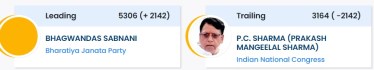 As per the latest election trends, BJP candidate Bhagwandas Sabnani is ahead with over 5,000 votes.