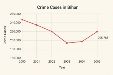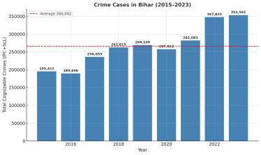 From 2005 to 2015 the NCRB and Bihar Police data suggests 1.68 lacs average cognizable crimes per year. In the last decade the crime rate has surged significantly to 2.66 lacs per year