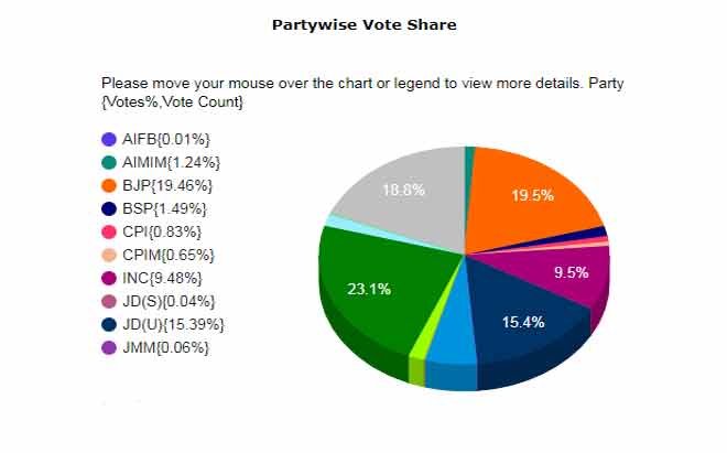 The LJP had fielded its candidates on 137 seats and it is believed that it affected JDU’s chances on at least 30 seats. However, the LJP itself failed to make an impact and ended up giving its worst-ever performance since its inception in October 2000. The party managed to win just one Assembly seat this time.
