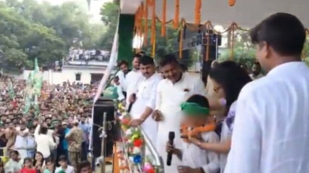 Bihar election 2025: A day is left before Bihar goes to polls but the controversies are not dying down. Now, a remark by a child at RJD leader and Mahagathbandhan’s CM candidate Tejashwi Yadav’s rally in Samastipur has stirred a row. The kid said that if “Tejashwi bhaiya” returns to power, they will roam with “katta” (country made gun). He went on to say in a poetic style that people will fire bullets on the command of Tejashwi Yadav.
