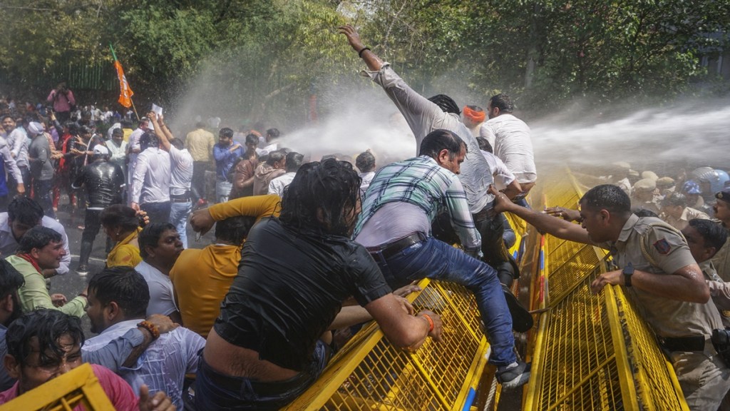 As Aam Aadmi Party workers gathered at Patel Chowk to protest against the arrest of Chief Minister Arvind Kejriwal, the Bharatiya Janata Party staged a counter-protest in Delhi, calling for Kejriwal’s resignation on Tuesday.