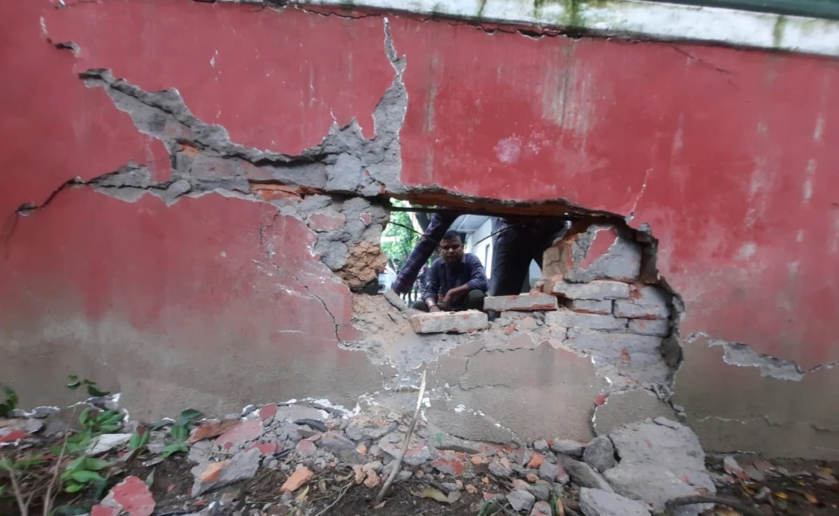The impact of the crash was so strong that a portion of the wall broke and left a gaping hole.