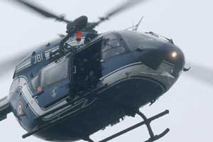 Five helicopters were seen flying over an industrial zone outside the town of Dammartin-en-Goele and the French Interior Minister confirmed an operation was taking place there. A police source said the two suspects had been sighted in the town, where at least one person was taken hostage.