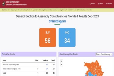 Chhattisgarh Election Results 2023 Live: BJP claims dominance in Chhattisgarh with 54 seats.