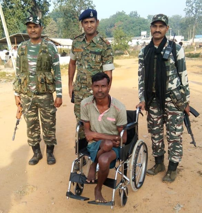 A differently-abled person reaches Chintagupha polling booth in Dantewada to cast his vote in the first phase. Meanwhile, polling is uncerway in all 18 constituencies amid tight security.