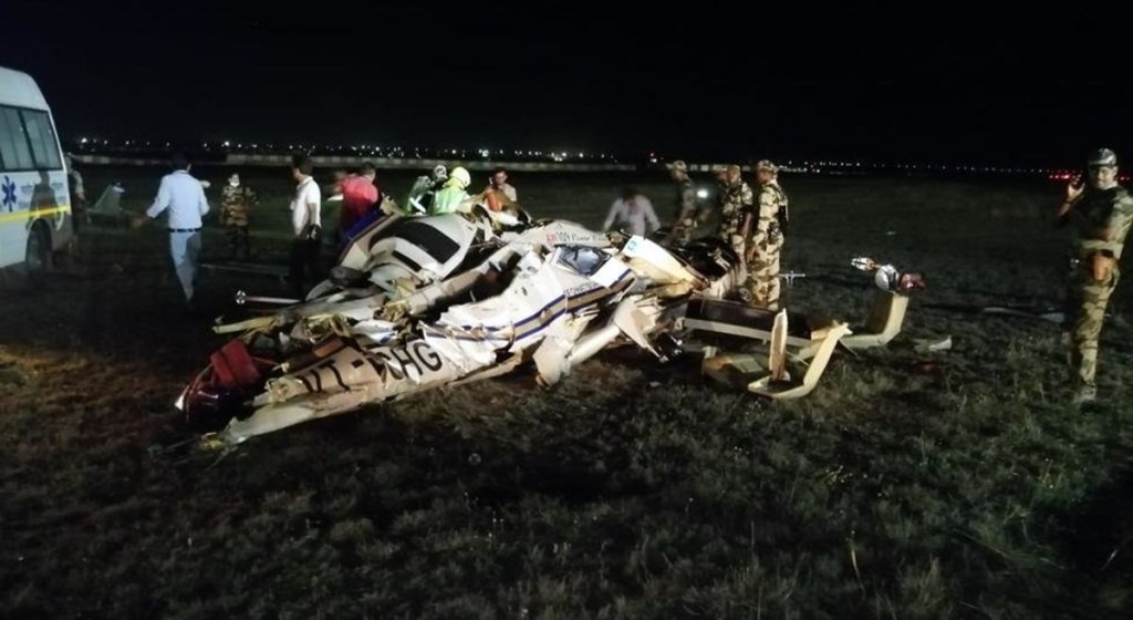 The two pilots on board the helicopter — identified as Captain Gopal Krishna Panda and Captain A P Shrivastava — were seriously injured in the crash and taken to a nearby private hospital where they were declared dead.