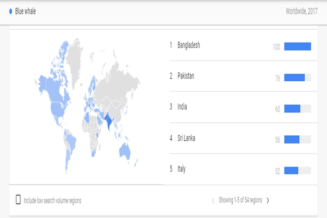 A 2017 Google Trends report shows that India was the third highest numbers of searches related to the Blue Whale Challenge in the world after Bangladesh and Pakistan. While it may not mean that the searchers were looking to commit suicide, the mass hysteria and the teenage deaths reported in India was enough to set the alarm bells ringing.