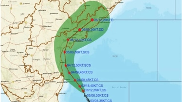 The cyclone is likely to transform ‘severe’, is expected to cross South Andhra Pradesh between Nellore and Machilipatnam close to Bapatla with a maximum sustained wind speed of 90-100 kmph gusting to 110 kmph. (Image courtesy: IMD)