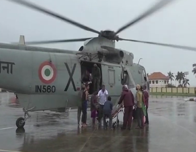 9: 32 am: Two fishermen died while 214 others were safely evacuated in rescue operations jointly launched by the Indian Navy, Air Force and Coast Guard in the seas off here on Friday as heavy rains lashed the area under the influence of Cyclone Ockhi, reported IANS.